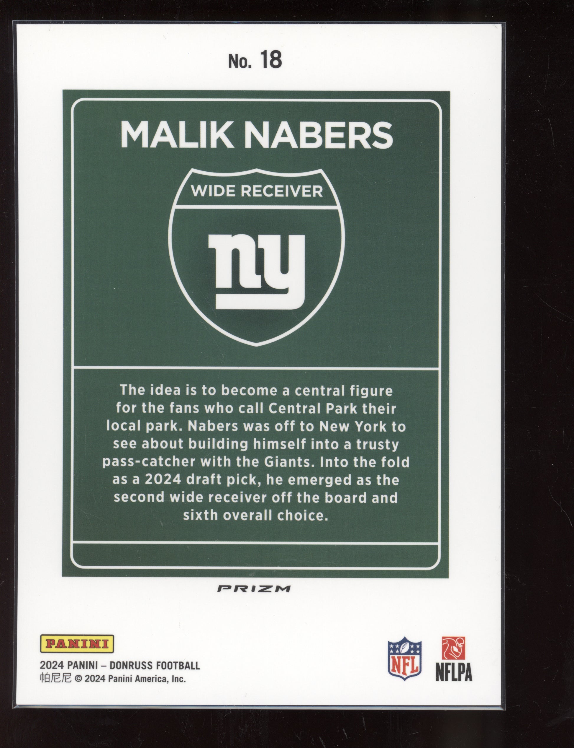 Malik Nabers 2024 Panini Donruss Oversized Jumbo Downtown RC